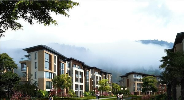 綠道聯(lián)合在本案的設(shè)計(jì)中,將項(xiàng)目定位為世界級(jí)山地溫泉養(yǎng)生棲息地。方案規(guī)劃與建筑的原則是先有“景”,再有“觀”——先有“涵谷” 八景、“四洲”、“四谷”,再有觀景的仙居八境“風(fēng)花雪月”、“ 詩(shī)詞歌賦” 。在建筑設(shè)計(jì)方面,塑造新亞洲建筑風(fēng)情,戶戶生態(tài)全景,戶戶溫泉入室,產(chǎn)品包括單層、雙層養(yǎng)生別墅、四層電梯假日公寓、四層一梯四戶墅景公寓、三層花園洋房以及五星級(jí)產(chǎn)權(quán)式度假酒店等,構(gòu)成一個(gè)豐富的中式住宅體系,營(yíng)造一片風(fēng)花雪月的人間仙境。