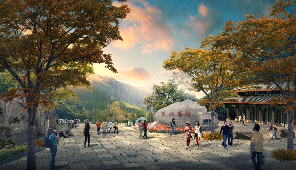 項目遵循“高起點、大視野、大旅游”原則,通過機構(gòu)科學(xué)、嚴謹?shù)淖稍兎椒ê凸ぞ哌M行整合、提煉和分析,提出了“生態(tài)優(yōu)先”、“國際發(fā)展”、“集群發(fā)展”、“項目拉動”、“和諧發(fā)展”五大策略,擬定“天坑地縫·天地人和”的主題定位。充分尊重現(xiàn)狀、利用現(xiàn)狀,采用軸線布局手法,形成本項目“一核一軸·三大片區(qū)”的布局結(jié)構(gòu)。