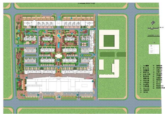 項目考慮“人、自然、空間”之間的和諧關系,堅持以人為本的設計理念,在設計中以生態環境優先為原則,充分考慮建筑和景觀之間的關系,通過材料和造型的運用,將歐式建筑和新古典景觀進行風格樣式上的對接。在規劃的同時,輔以景觀設計,最大限度的體現居住區本身的底蘊。設計中結合當地特色,在小區中設置小區中心景觀軸線、橫向景觀帶、生態種植區等。在中心景觀軸線當中設置了歐式的矮墻噴泉、花溪疊瀑、下層廣場、噴泉水景等,使居民樂居其中。規劃設計注重園林景觀的可參與性,在小區內設置開闊的硬質景觀,如波紋鋪地、琴韻廣場等。小區內公共空間、私密、半私密空間如:下層廣場和健康步道兩者的公共性和私密性設計對比強烈,動靜結合。通過不同的景觀設計,也為小區居民提供空間上充足、多樣的休閑、交往、活動場地,營造和諧、友善、溫馨的人際關系氛圍。
