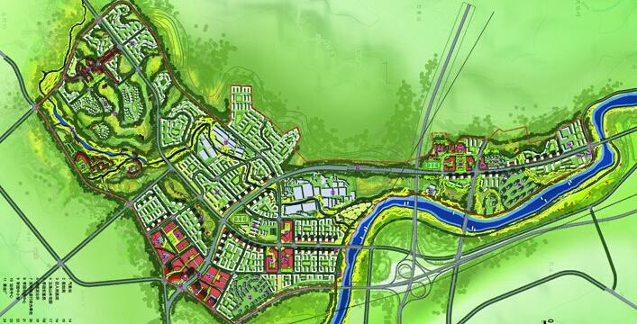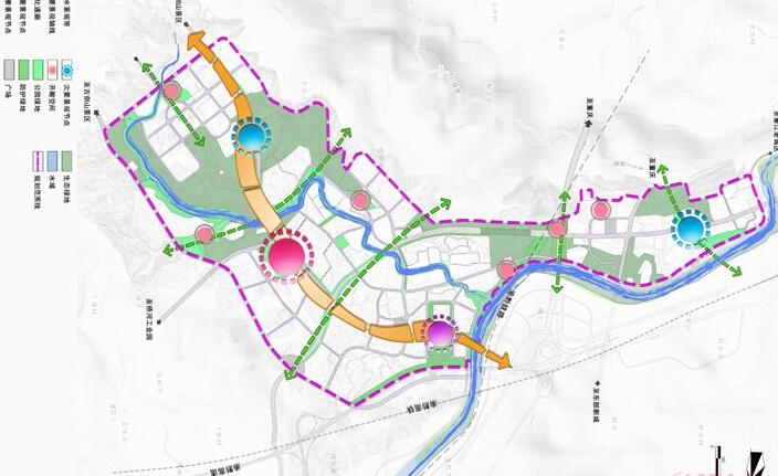 將有活力連續的街道、街區和公園用完善的步行系統和綠色廊道串聯,加強山與城、水與城、山與水的對話,聯系起基地的生態要素,構筑城市的生態基底。在這個基底之上,打造山環水繞的城市環境、高品質社區、汽摩交易中心、社區生活中心,使基地成為未來城市的活力源泉、文化源泉、發展源泉和形象高地。