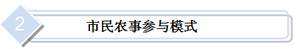 ▲可由農民提供土地,讓市民參與耕作的園地。一般是將位于近郊的農地集中規劃為若干小區,分別出租給城市居民,用以種植花草、蔬菜、果樹或經營家庭農藝,其主要目的是讓市民體驗農業生產過程,享受耕作樂趣。市民農園以休閑體驗為主,多數租用者只利用節假日到農園作業,平時交由農地提供者代管。根據使用對象的不同,該模式分為家庭農園、兒童農園、銀發農園3種類型。