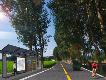 農(nóng)村公交站點(diǎn)設(shè)置:設(shè)置間距為1km,如與村口、道口可考慮實(shí)時(shí)縮短或增加距離 ;車站滿足候車功能同時(shí)可融合互聯(lián)網(wǎng)+的相關(guān)服務(wù)信息,例如二維碼查詢車次運(yùn)營(yíng)情況及篩選去周邊區(qū)域車次。